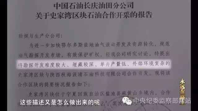按照规定,油田在对外合作之前必须先探明储量,才允许拿出来对外合作。但是,违规报批的9块油气田里,有7块根本没有进行勘探,就被上报申请对外合作开采。在送批的报告中间有这样的表述,说这些油田属于勘探难度大、埋藏较深、单井产量低、外部环境复杂,如果说根本没有勘探,这些描述又是怎么做出来的呢? 王道富(中石油原高管):满足蒋洁敏总经理对我们要拿去合作开发的一个要求,这是首先考虑的问题,然后在进行形成文件的时候,也就自己找了一些理由吧,自己找了一些理由,来作为合作开发的理由。 记者:那也就是说其实这些它是编出来的一些理由? 王道富:对,编出来的一些理由。 这9块油气田的审批一路违规闯关。回顾整个审批过程,几乎每个环节都严重违反了程序和制度,中石油多名管理人员都没有负起应该负的责任、把好该把的关,最终也都要承担相应的责任。 冉新权(中石油原高管):因为很多事情,一听说是领导安排的,大家都不愿意得罪领导,一听说有背景,所以说大家也就,确实存在这种情况,睁一只眼闭一只眼就过去了。 当对于制度的尊重,让位于对领导意志的遵从,一个个本该把关的环节都变得形同虚设。当一把手的权力超越边界却缺乏监督,违纪违法的指令,就这样在系统内部畅行无阻。 王道富(中石油原高管):我之所以能够有今天,之所以能够到这个地方来,也就是既是作害者,也是受害者。所谓作害者,就是说我参与到这件事情当中了。所谓受害者,因为蒋洁敏总经理安排了这件事情,他的想法和要求当和制度发生矛盾的时候,怎么样去防止和监督领导,成为很重大的一个问题。我觉得还是按照党中央提出来的全面依法治国、全面地管好党,从这个角度去根治我们这些,存在的非常多的这些问题和矛盾,去彻底扭转这种领导一把手就权大于法、权大于制度的这种环境。 石油的生成,至少需要200万年的时间,在任何国家,它都被看作意义重大的战略能源。中石油集团作为中央企业,负有为国家管理石油资源的重大责任,但在这一事件中,却由于个别领导的意志而层层违规,让本是国有公共资源的油田,成了个别人为自己捞油水的富矿,其中的教训,可谓沉痛。 蒋洁敏(国务院国资委原主任):我作为中石油的一把手,签了字,所以说别人不好亮黄灯,也不能给红灯。 记者:如果说上级做了一个错误的决定,要做一件错误的事情,每一层的下级都不敢亮红灯,那不是这样的错误就永远不会被纠正吗? 蒋洁敏:那关键把一把手管住,中央不是已经现在加强了对一把手的监督吗,巡视制度是对主要领导的。什么都要抓一把手才行,管住了一把手,就管住了问题的绝大部分。中石油出了这些问题,腐败的问题,我是负主要责任的。我带头破坏了制度,别人也能破坏制度,我腐败,别人也能腐败,所以我是中石油的历史罪人。这个我认识得非常沉重非常清楚,我对不起他们。 蒋洁敏一案警醒着人们,不论对于一个单位、一个部门还是一个地方,对领导班子、主要领导干部的监督,都是至关重要的。而这在过去,也往往是监督的难点甚至盲点。 房宁(中国社会科学院政治学研究所所长):领导监督太远,群众从下监督上很难,同级的监督又不好意思。所以中国历史上的经验以及我们现在的经验,监督一把手,主要地是靠上级来监督。我们现在有派驻制度,有巡视制度,这两个制度其实就是对党政领导机关,特别是一把手的监督。 党的十八大以来,党中央把纪检体制改革摆上国家治理体系和治理能力的高度,出台了一系列改革措施,加强党内监督执纪问责。坚持组织制度创新,注重内涵发展,在尽量少增加编制和机构的情况下,整合资源、内部挖潜、盘活存量、调整结构,实行单独派驻和综合派驻相结合。2015年3月,中央纪委在中央办公厅、中央组织部、中央宣传部、中央统战部、全国人大机关、国务院办公厅、全国政协机关这7家党和国家重要部门派驻纪检组。2015年11月20日,经党中央同意,中央办公厅出台中央纪委派驻纪检组全覆盖的方案,标志着党内派驻监督真正覆盖到139家中央一级党和国家机关。 王庭坚(中央纪委组织部副部长):我们原来只向具有行政色彩的一些部门派驻了纪检组,而恰恰在党的工作的核心和中枢部门,恰恰没有去派驻纪检组,那么这是有空白的,有可能或者是已经出现了灯下黑的现象。通过反思,我们清醒地认识到,哪一个干部都需要监督,哪一级干部都需要监督。 十八届中央紧紧抓住领导干部这个关键少数,从高级领导干部生活待遇、用房用车、秘书配备、建章立制等方面强化党内监督,坚决制止特权思想和特权行为。此外,每到岁末年初,全国副处级以上的领导干部和国有企事业单位领导班子成员,还要填写一份特别的材料,《领导干部个人有关事项报告》,填报包括收入、房产、投资、婚姻状况、子女情况等14个方面的个人有关事项。与此同时,还要对这些报告进行抽查,发现不如实报告将进行严肃追究。 房宁(中国社会科学院政治学研究所所长):这个很重要是一个官员的征信系统,就是你要对组织老实,你重大的事项你要报告,你这些东西尽管都是合法的,但是我们也要了解你现在的情况。而作为一个官员来讲,诚实、公信力,这是前置性的,你不值得信任,那你就做不了官。 反腐败需要标本兼治,而治本的关键,在于把权力关进制度的笼子里。制度建设的完善,有赖于全